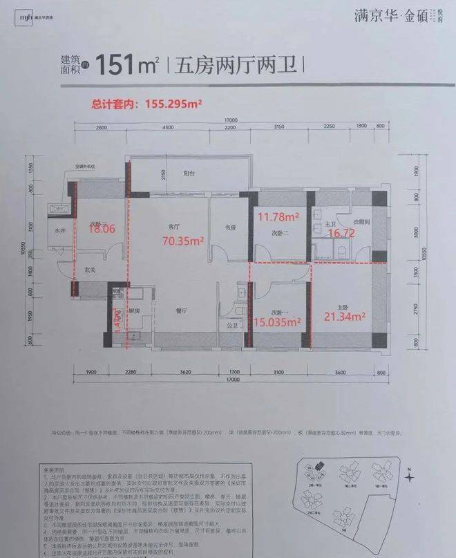 满京华金硕悦府,由满京华集团打造,总占地面积约2.61万㎡,总建筑面积约21.8万㎡,计容建筑面积约15.53万㎡,容积率5.95,绿化率30.01%,共由5栋32-48层高的住宅组成,其中1栋1/2单元住宅48F,2栋1单元住宅32F,2栋2单元住宅47F,3栋住宅48F,4栋是1所幼儿园,还配建有社区菜市场。