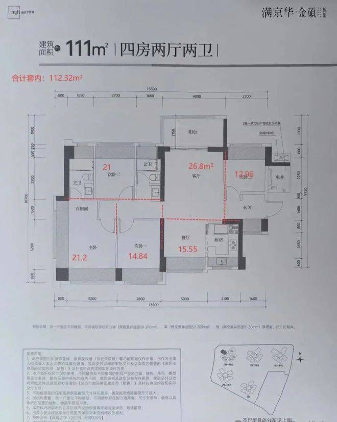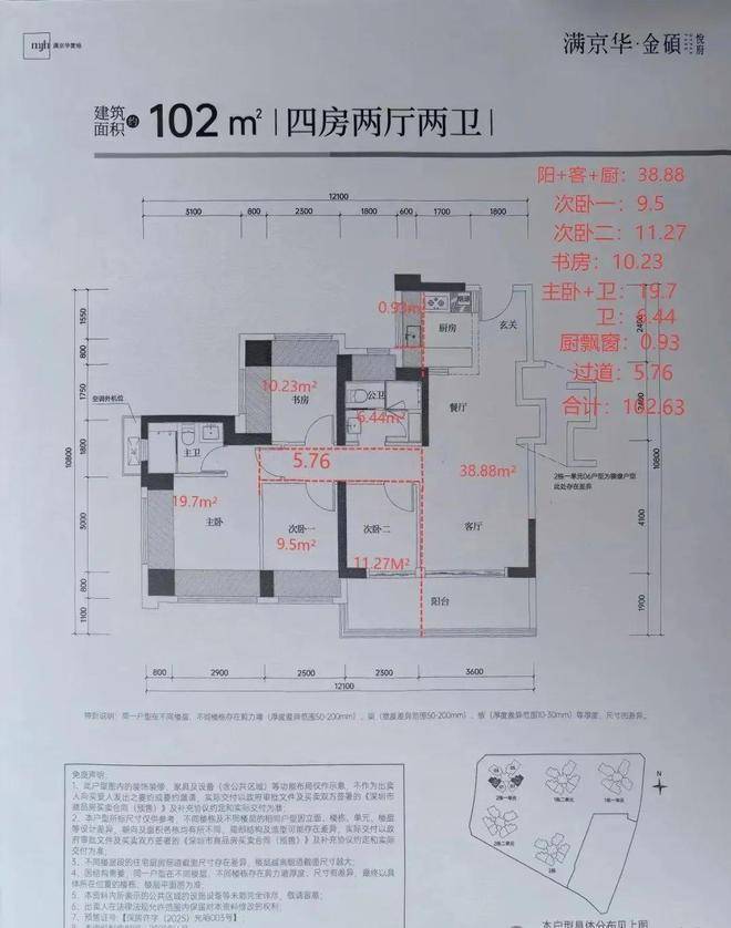 最新消息:光明中心区,满京华金硕悦府本次计划首推2栋1单元,共186套房源,面积有83-101㎡的3房2卫,111㎡的4房2卫,150㎡的5房2卫户型,价格方面可以参考前期开售的满京华金硕和府,备案均价4.72万/㎡,开盘会有折扣优惠,折后大概4.2-4.3万/㎡,起步门槛预计会在330万左右起。