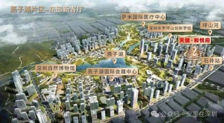 2023年深圳两会提及加快建设9大区域,包括燕子湖新区,坪山十四五提出“1+7+N”重点片区格局,1为燕子湖,市级区级双重背书,高标准打造定位东部城市新客厅。