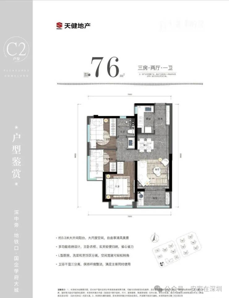深圳天健和悦府首发 75-99㎡高实用率三房,主力户型为约75㎡三房两厅一卫、89㎡三房两厅两卫、99㎡三房两厅两卫还有约75㎡|南向通透 实用三房,预计均价3.5万/㎡,装修交付