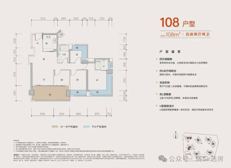 这次加推的84-128㎡3-4房,同样为新规户型,网传得房率达96-104%。每个户型房间几乎被飘窗+阳台环绕,据传赠送率最高达27%!