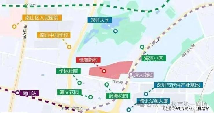 桂庙新村城市更新单元位于南山区粤海街道白石路与学府路交叉口西北侧,东临白石路,西近南海大道,南临学府路,北面与深圳大学毗邻。周边集聚了腾讯滨海大厦、软件产业基地等写字楼,地理位置优越。