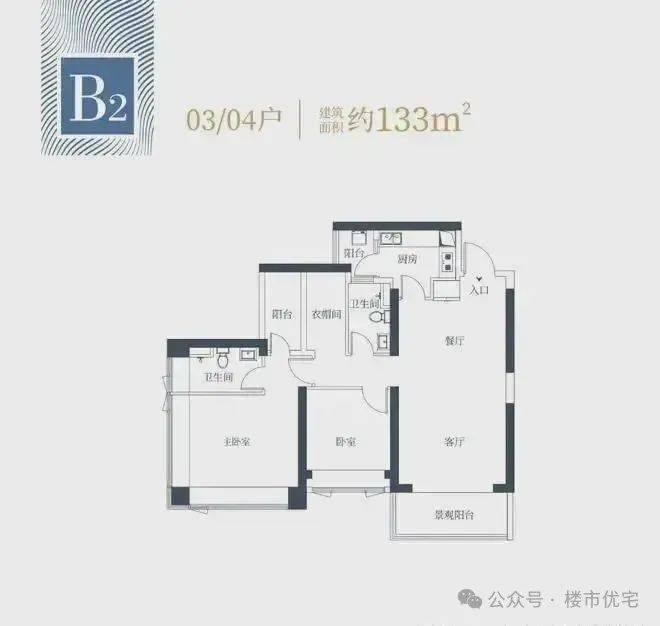 129㎡(西北向,端头位置,三房两卫)