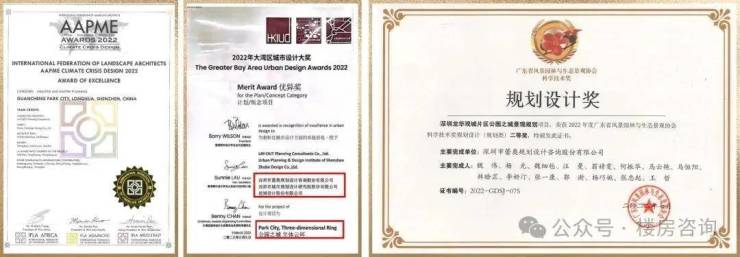 国内外选评载誉无数,区域国际铸就战略高地。问鼎国际ILFA顶级荣誉以及荣获2022年大湾区城市设计大奖、广东省风景园林与生态景观协会科学技术奖规划设计(规划类)奖项。