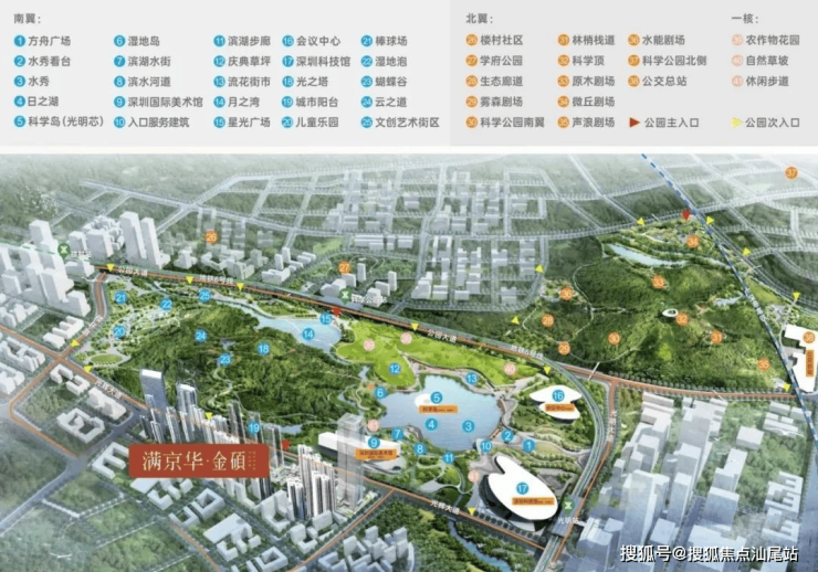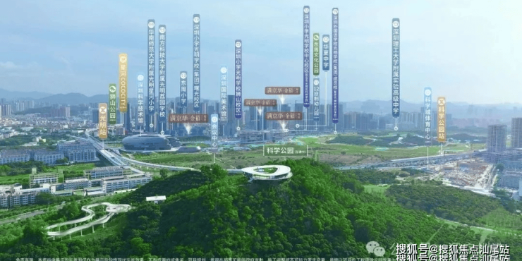 光明中心区科学公园内目前体量最大的新盘、科学公园头排的满京华狮山项目,相当值得关注。这是一个近百万方的综合体大城,集高端住宅、商业、办公于一体。