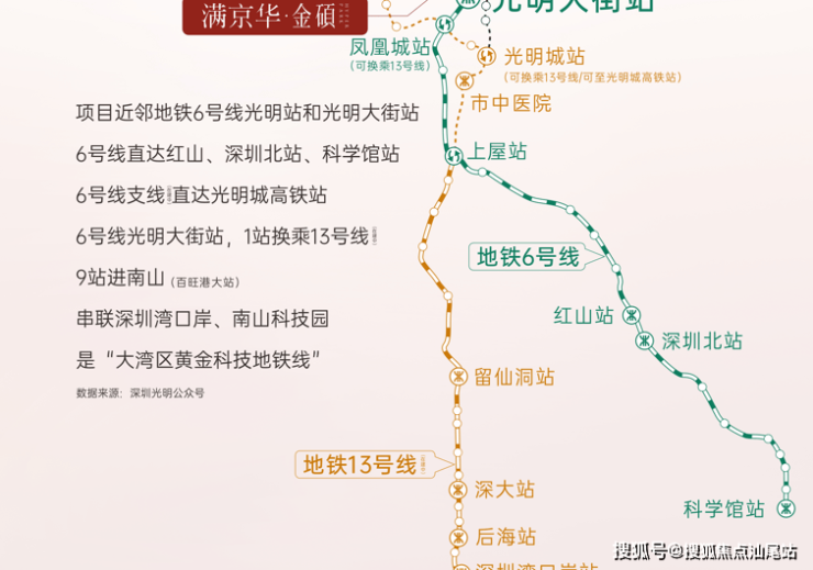 3地铁:邻6号线光明站/光明大街站、6号线支线 (在建中)、13号线 (在建中)