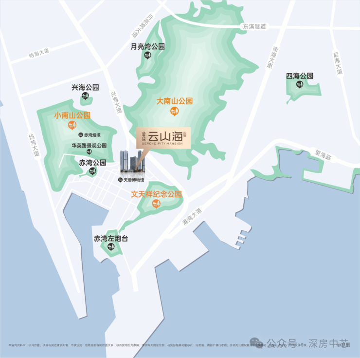 🏞七园为邻:约2公里范围内,有大南山公园、小南山公园、文天祥纪念公园、华英路景观公园、赤湾公园、兴海公园、月亮湾公园等公园环伺