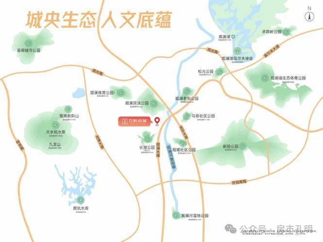 项目周边汇集五大公园,观澜湖生态体育公园(运营)、观澜民法公园、观澜体育公园(在建)、观澜河湿地公园、长湖公园(规划)及茜坑水库;同时周边拥有充足的医疗配套,呵护业主健康生活。