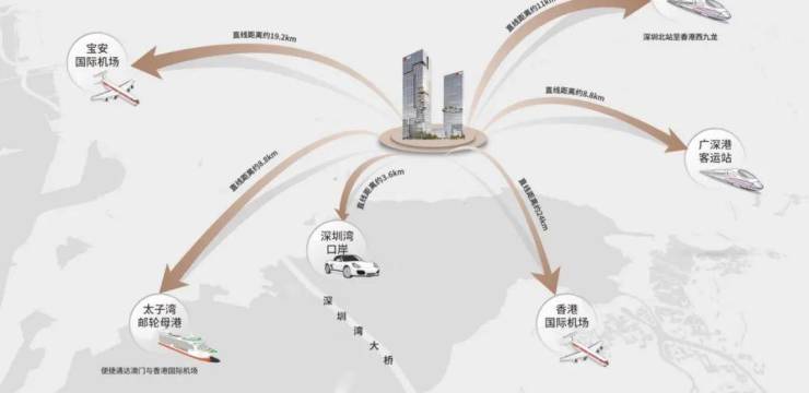 深圳一个无需换乘,即可轨道直达五大出境口岸的超级枢纽,海陆空立体通达,链接全球,地下交通层可以直接办理值机。