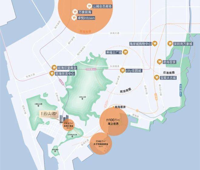 商业: 项目自带部分底商,旁边开云府还有4.6万㎡的赤湾汇购物中心(在建中);1.5km范围内,分布着人人乐、华润万家等商超,可满足日常所需。开车10分钟或地铁两个站还能去到海上世界以及全亚洲最大的太子湾K11购物中心