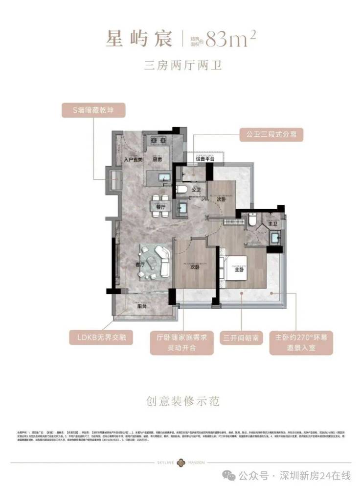 建面约83-133㎡3-4房宸式美学新著,LDKB巨幕方厅,跑道式景观阳台,小家化星级酒店主卧套房,270°环幕全景舱,客厅次卧无剪力墙灵动设计,实现超高实用率,每一户皆是颐安“超新一代作品”的匠心宣言。