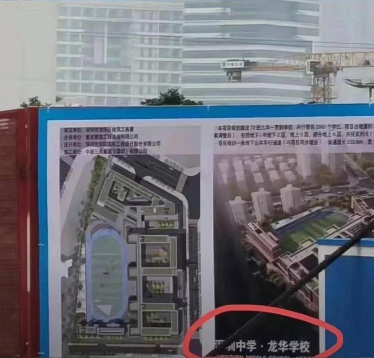 据网传图片信息,民治学校工程牌上已经印上了“深圳中学·龙华学校”的字样,此前传闻深中龙华分校的地址已经基本坐实(具体信息以官方通报为准)。