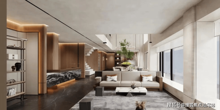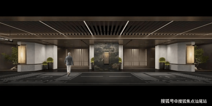 🔘星级车库:车库双大堂设计,大面积采用天然浅色石材,并于天然奢石加以点缀,光厅顶面采用金属构件,结合灯带,增加层次感,彰显项目高定品质。