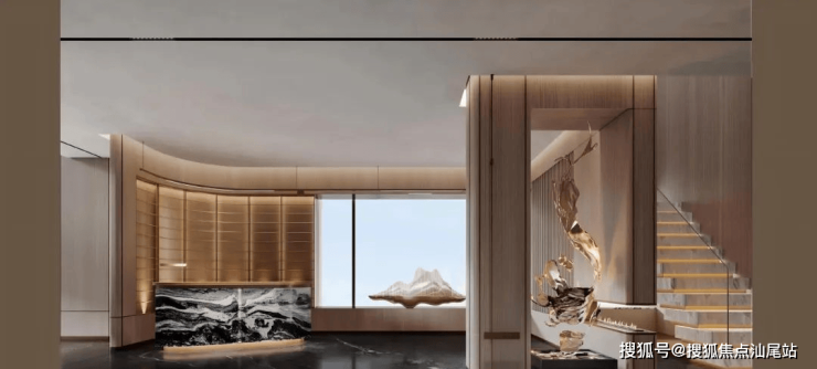 🔘归家礼序:三重尊奢归家,主入口前设置迎宾广场,台地式建筑拾级而上,入社区后景致相依,酒店式的归家奢华大堂,营造归家尊崇仪式感。
