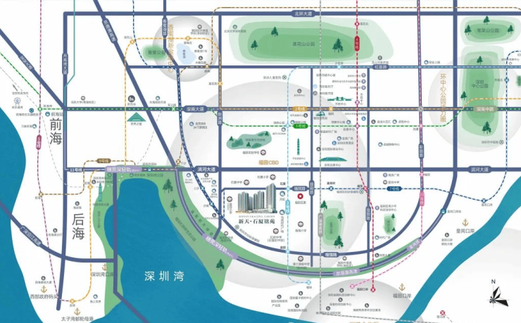 最新“十四五”规划中,福田定位湾区总部经济核心区,并聚焦河套深港科技创新合作区、香蜜湖新金融中心、环中心公园活力圈“三大新引擎”,项目位于三大引擎的三角地带核心位置,坐拥众多规划和资源。