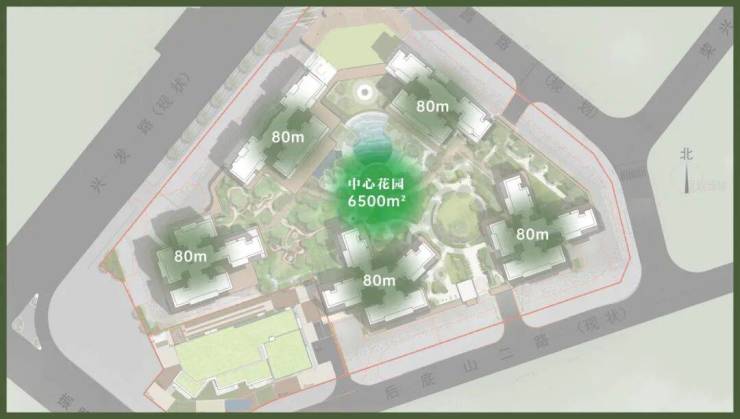 依托红花山低密禀赋,以2.92容积率(住宅地块)、5栋80米高住宅,围合出一片约6500㎡的中央园境。外揽山景,内拥庭院,实现内外双园。楼与楼之间拉开了足够距离——每一户都能拥有充足的阳光和穿堂风,每一扇窗外都是风景,而不是邻居的墙壁。
