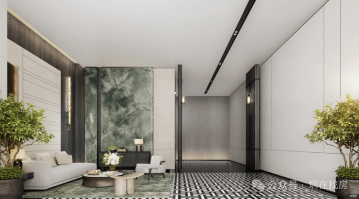 例如,项目携手大师级国际顶尖设计机构CCD(郑中设计事务所),将超脱酒店的艺术美学注入首层入户大堂每一寸公区,从墙面到地面,均采用高级石材,质感温润而高级,彰显着这座城市时代精英的品味。