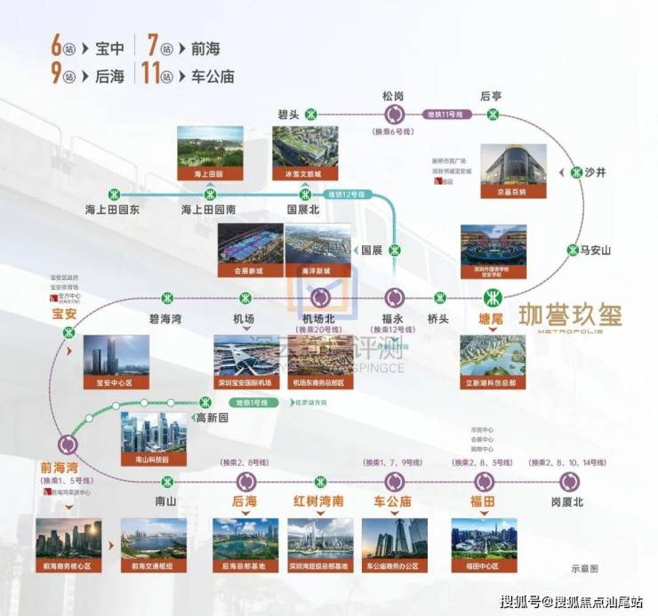 无缝连接11号线塘尾站,6站到宝中(22min),7站到前海(25min),9站到后海、11站到车公庙;邻近宝安大道,开车通行也便利;