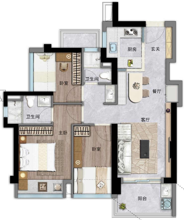 【约86㎡三房两厅两卫】