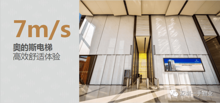 【配置】- 16米超高大堂、4.5米阔境层高、2.6米超大幅宽玻璃幕墙、13部最快7米/秒奥的斯电梯、VIP专属直达电梯、VIP总裁盥洗室