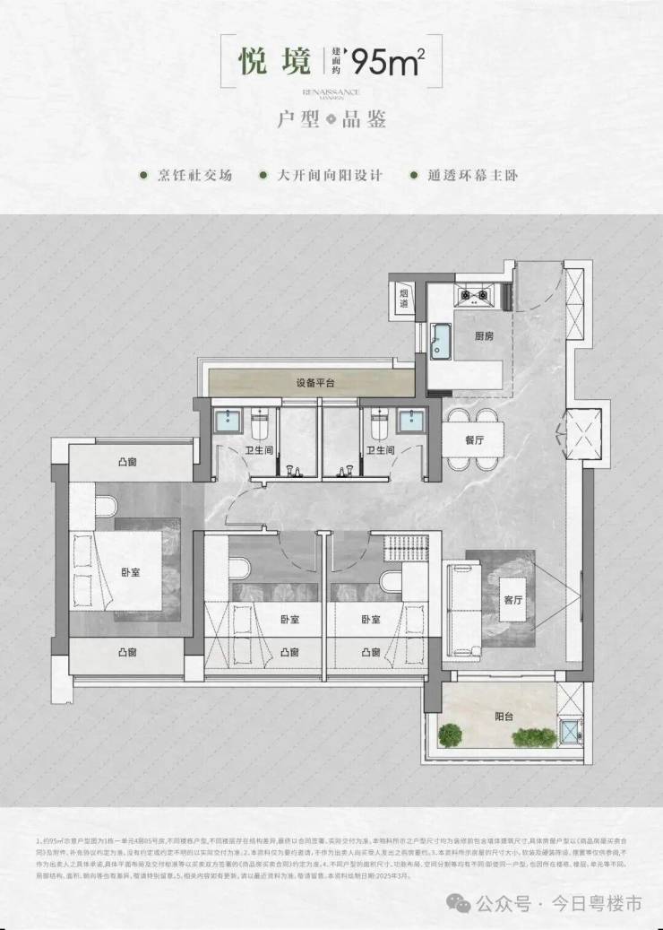 『中海云启源境家园』是新规纯居新宅盘,包含建面约90-95-105-143㎡三至四房,户型结构方正、功能间配比&配比合理,拥有约96%超高使用率。值得注意的是,它在业内享有“小玖序”美誉,所以功能间配比不在于多,而是更注重空间尺度及舒适性,整体空间感优于市面同类型项目。