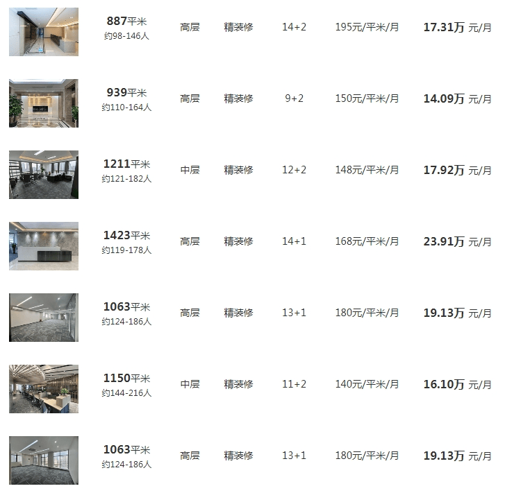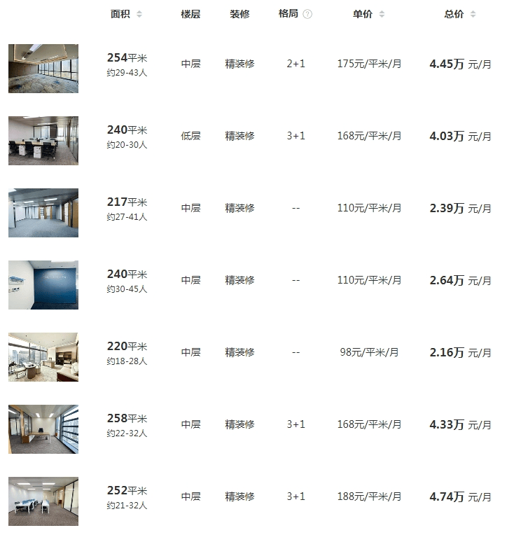 【租金报价】: 130- 165元/㎡