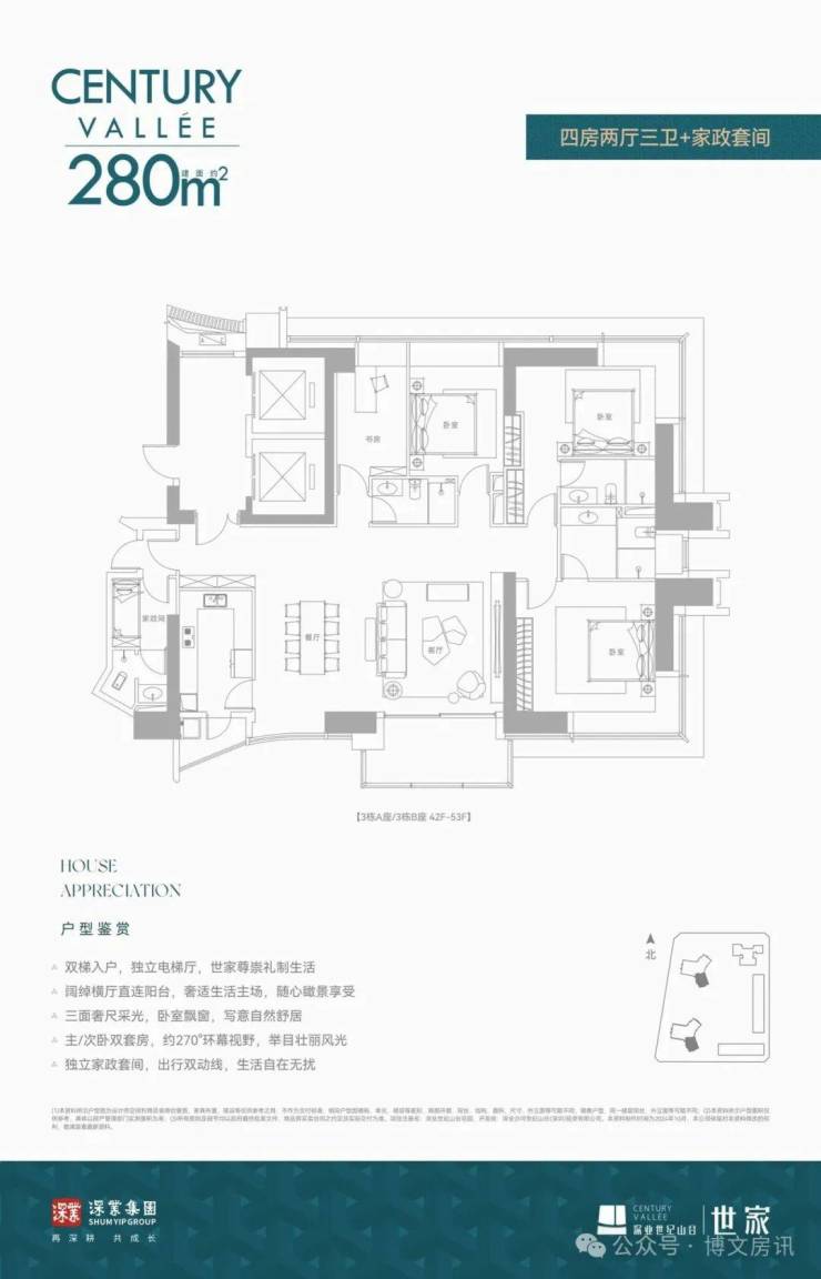 🔸建面约280㎡ 四房两厅三卫+家政套间