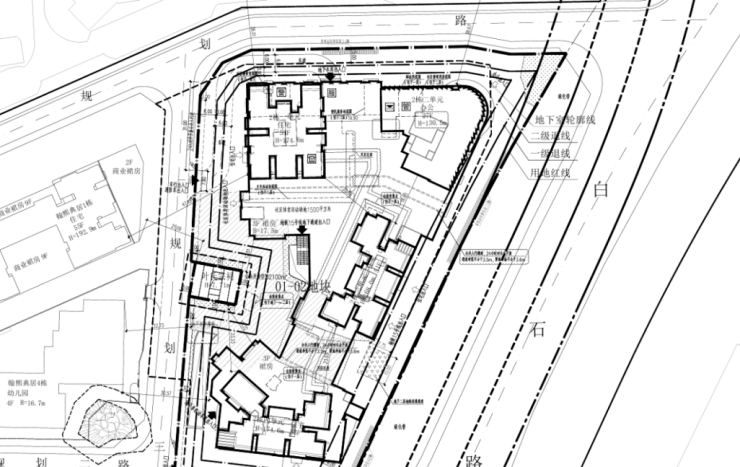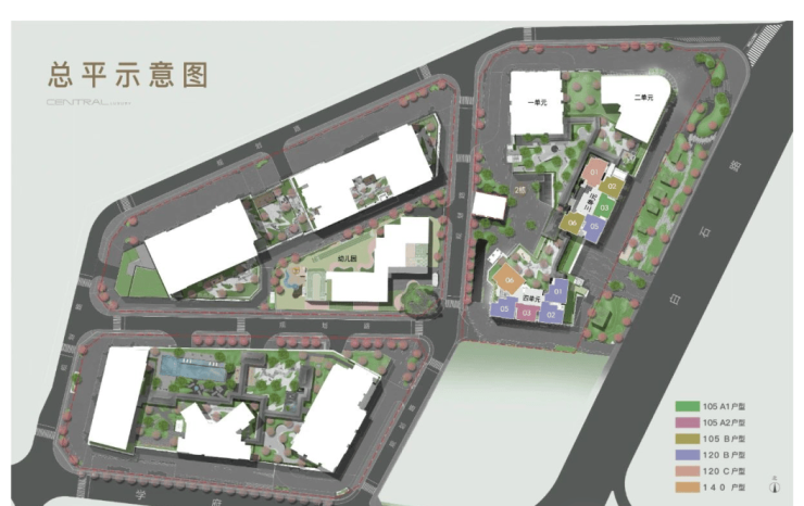 01地块:规划3栋44层、55层、55层超高层住宅(1栋一、二、三单元),以及1栋幼儿园(4栋)。
