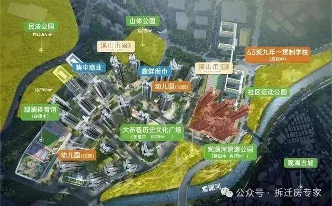 大项目依河而建,公园环绕,总建面约120万㎡,划分了6个地块进行开发建设,打造一站式综合大城生活圈。待整体完成后,将涵盖29栋住宅、2栋写字楼、约2万㎡商业配套、2所幼儿园、1所63班九年一贯制学校、文化活动中心、大布巷历史文化广场等。更有1条河萦穿,7个公园环绕,以及观澜体育中心(建设中)紧邻,是龙华少有的以品质、生态、文体为规划核心的低密大城。其中,观澜河是龙华山水生态中轴重要节点,经过多年的系统治理和沿河环境品质提升,实现了“破茧成蝶”华丽转变。未来还将持续对标国际一流,高质量打造为都市亲水生态长廊。沿观澜河还建设了多个碧道公园,溪山禾玺旁的观澜河碧道公园(建设中)约3万㎡,规划联动观澜古墟,实现坐船游“水上观澜”,观古墟灯光秀的场景,预计今年第三季度可完工。项目紧邻的观澜体育中心(建设中)建面约7.2万㎡,是一座集运动休闲、公共服务为一体的综合性体育中心。