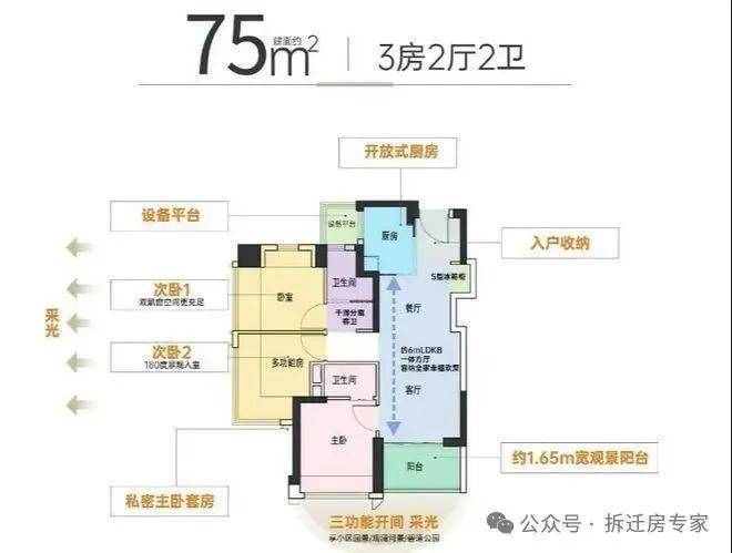 1. 建面约75㎡3房2厅2卫