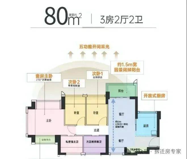2. 建面约80㎡3房2厅2卫