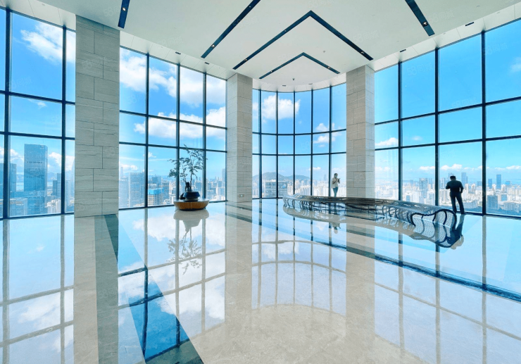 1、深圳一4大堂设计,定制企业尊崇形象,360度空中全景大堂以及云端双大堂,细节化无边框处理,品质大气上档次。