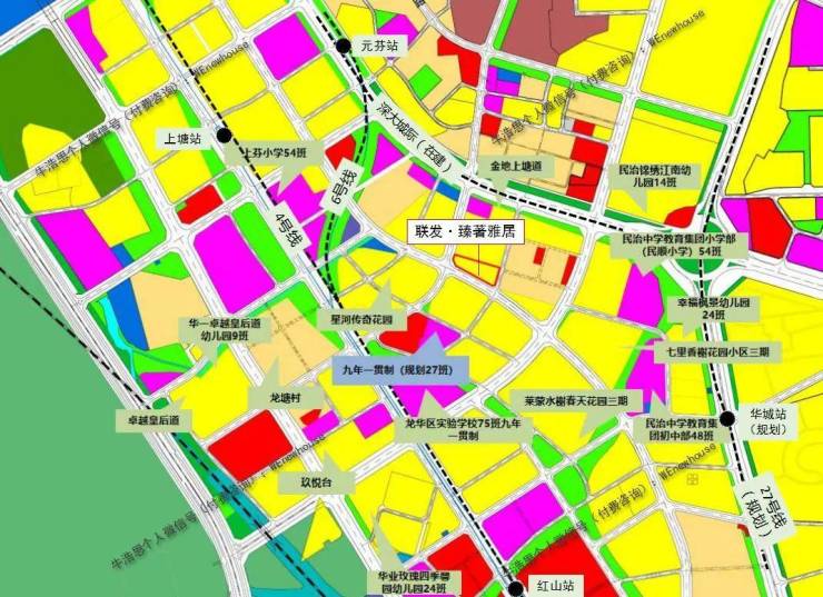 联发·臻著雅居占位的红山-上塘,是龙华核心资源最为集中板块之一,被誉为龙华的CLD,作为城市中轴中心片区,红山-上塘与福田、罗湖中心及西丽大学城、留仙洞总部基地等核心地带相邻。这在人流、资金流等方面得以持续承接外溢需求,片区资源虹吸效应突出,是满足高品质商住的承载区。同时,片区南面与深圳北站商务区接壤,相当于龙华的中央商务区;东北面为龙华传统中心,规划发展为龙华超级商圈。