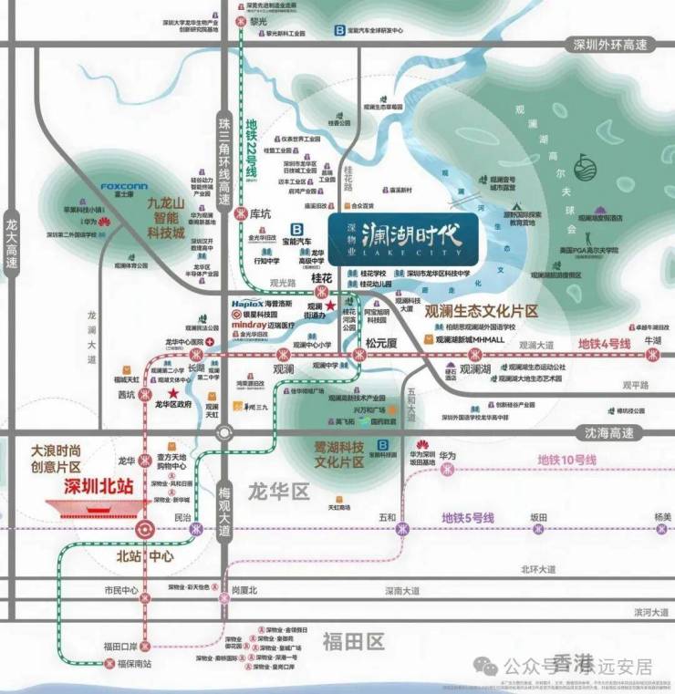 另外深物业澜湖时代仅一路之隔的龙华高级中学观澜校区,是全龙华区招生的。