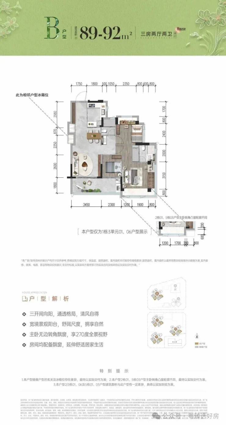 首次推首北地块1栋3单元,约80-92㎡ 3房,共195套,新规使用率高达96%-105%!