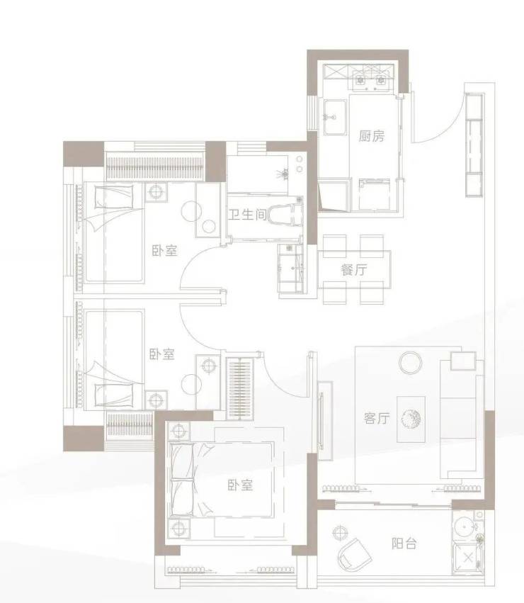 🔻面积:79-85㎡3房1卫,91-95㎡3房 2卫,125㎡4房2卫