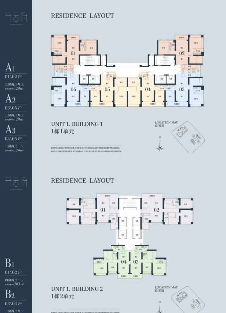 A1有两条腿,分别1-1栋01/02,主朝向是西北向,双龙抱珠格局。