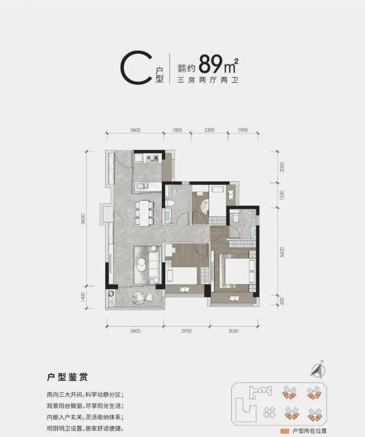 89㎡3房2卫365-436万 单价:4.1-4.8万