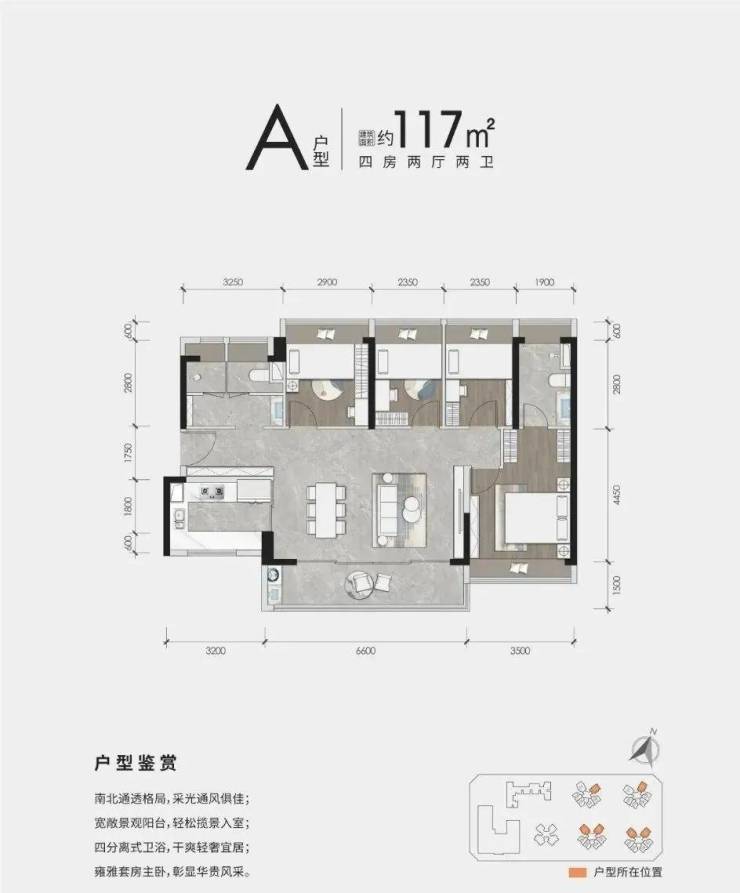 117㎡4房2卫528-609万 单价4.5-5.2万