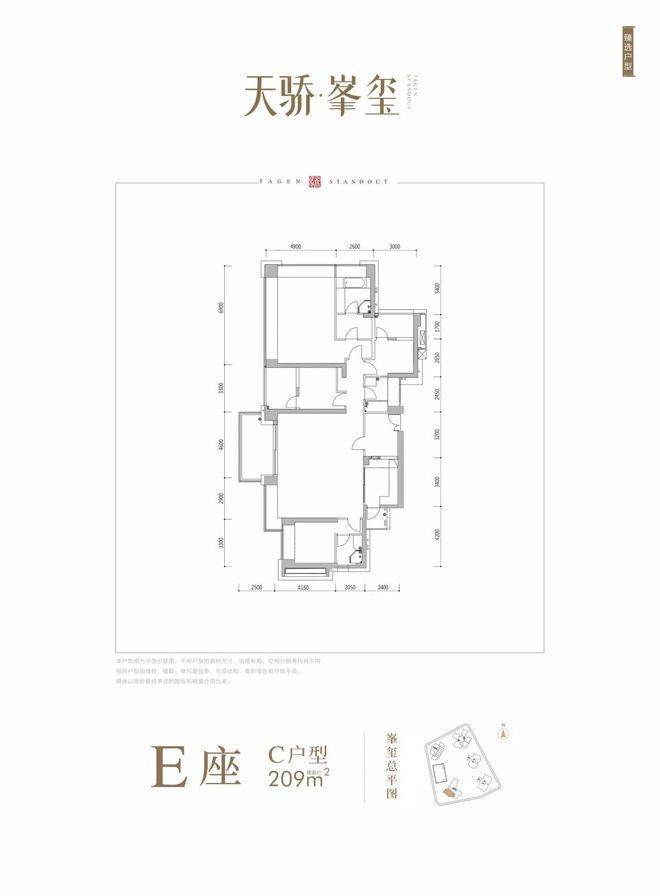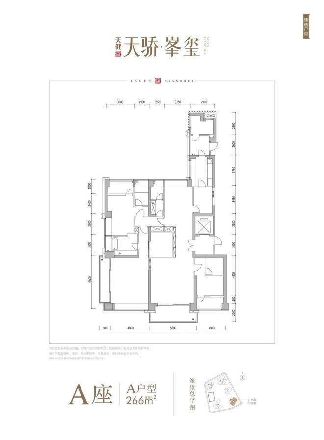 A座:A266㎡4+1房4卫 南北通 3阳台
