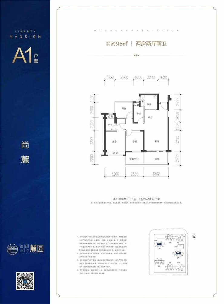 97㎡三房两厅两卫:拥有6.6米面宽大阳台,区域稀缺,双龙抱珠,双卫舒居