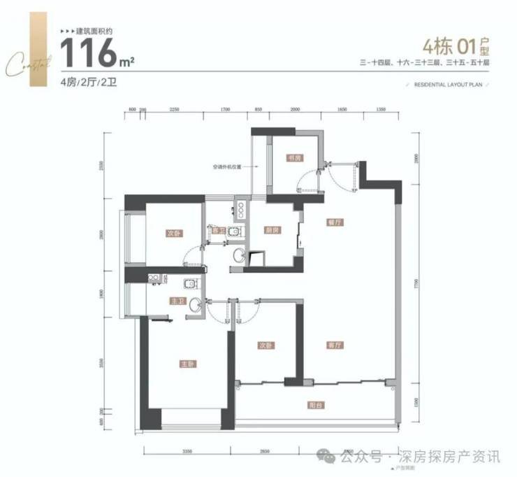 【约116㎡四房两厅两卫户型鉴赏】