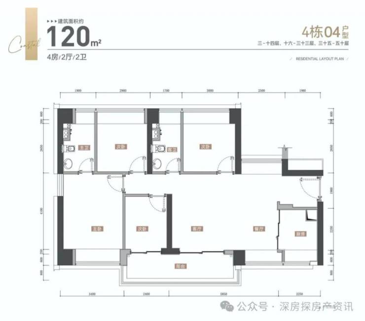 【约120㎡四房两厅两卫户型鉴赏】