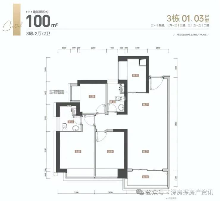 【约100㎡三房两厅两卫户型鉴赏】