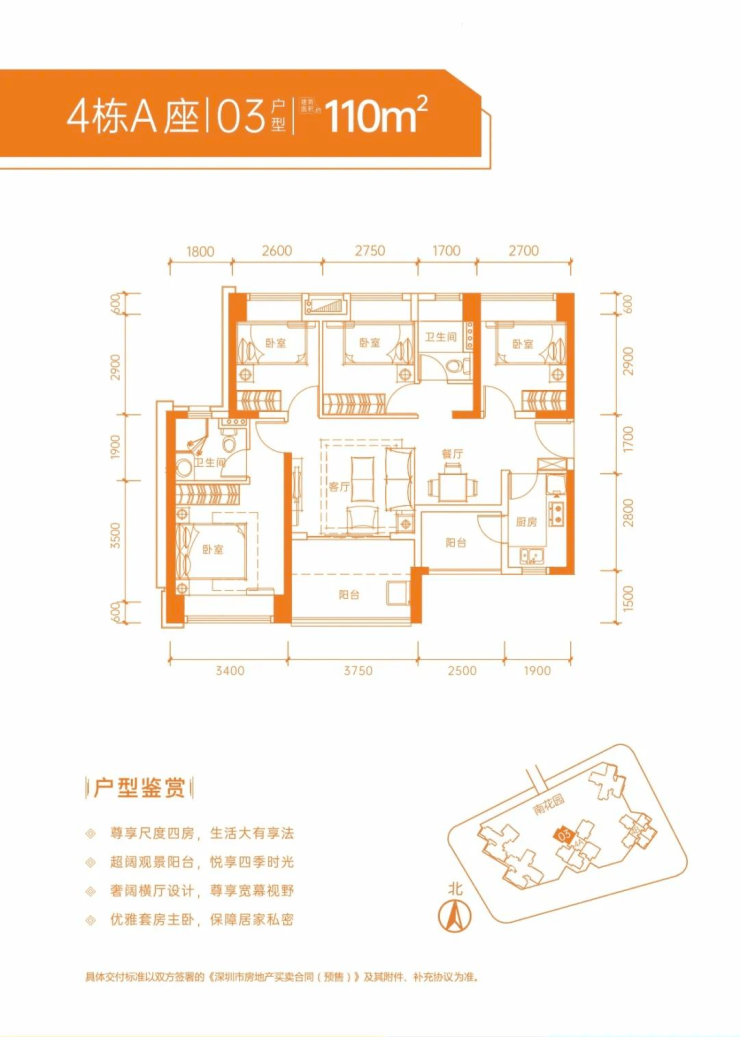 户型:75㎡2房,89-98㎡3房,110㎡4房