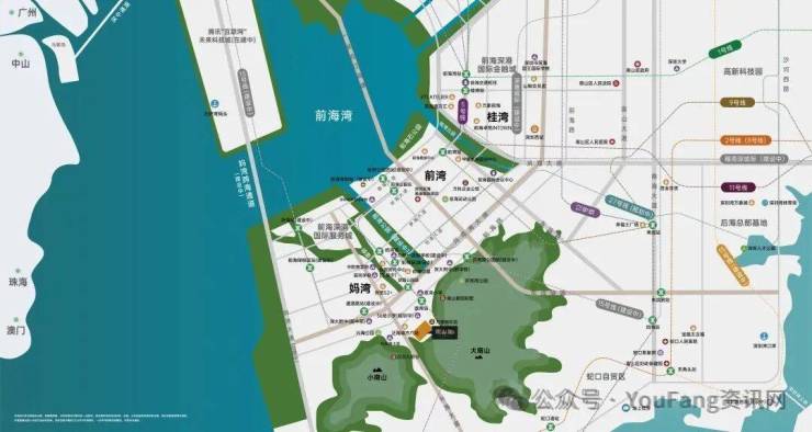 🏆前海”黄金三角“——三湾两城一山三湾:桂湾、前湾、妈湾两城:深港桂湾金融城+妈湾服务城一山:大南山生态居住区