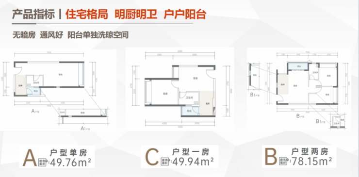 面积:49-50㎡1房,78㎡2房/写字楼:446-2107㎡