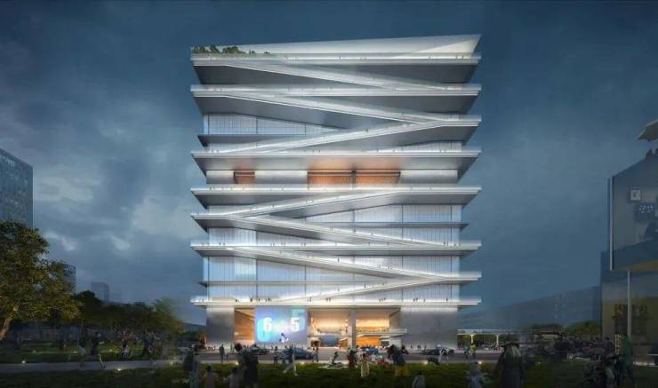 T2栋研发办公总高度约108米,打造片区标志性建筑,配置了约10米中空挑高大堂,接待中心约650㎡。