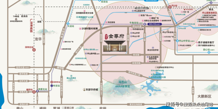 项目自带9班制双语幼儿园,中山中学一路之隔;临近坪山高级中学、坪山国际大学城、坪山高中园(在建中)。
