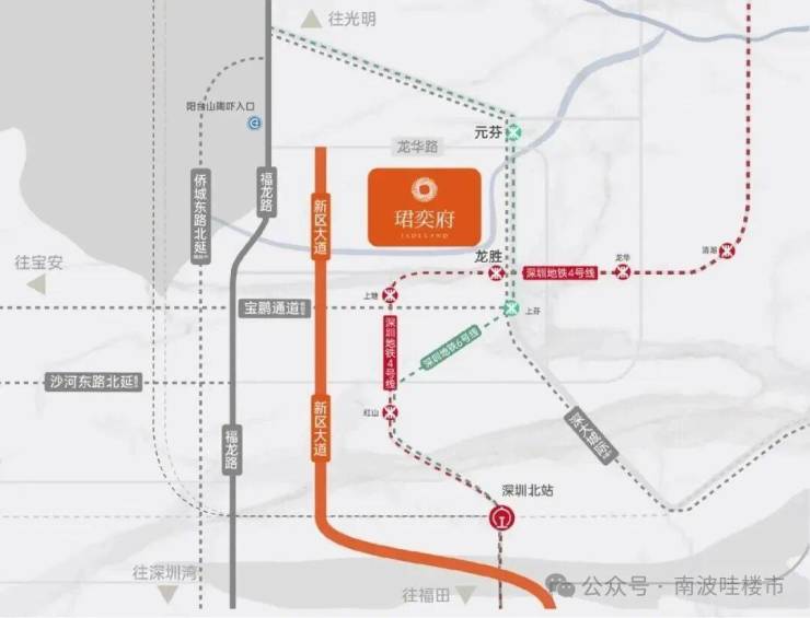 地铁:约500米4号线龙胜站,约800米6号线元芬站,3站深圳北, 5站福田;